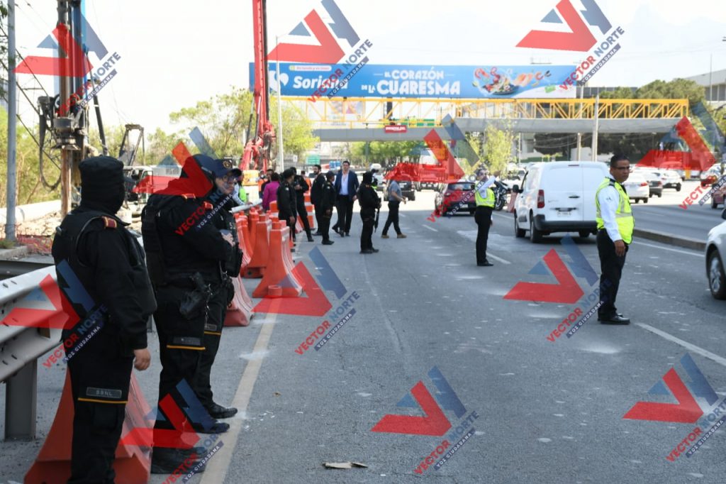 Los uniformados estatales, llegaron con tal de abrir el carril izquierdo de alta velocidad de Morones Prieto a la altura de la colonia Loma Larga el cual presenta serios daños estructurales sin dictamen técnico en mano y en base a las ocurrencias de altos funcionarios estatales