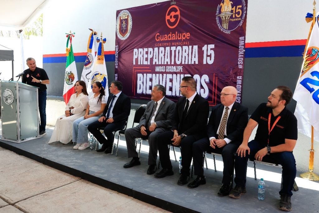 El alcalde de Guadalupe, Héctor García destacó que el espacio fue brindado en comodato y se le apoyó con trabajo de rehabilitación en el inmueble para proporcionar en una primera etapa cuatro aulas a los estudiantes además de un laboratorio, así como de una cancha deportiva al frente de la institución educativa.