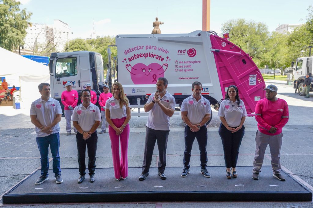 Durante todo el mes, las unidades rotuladas y los integrantes de la cuadrilla de recolección también vestidos de rosa, recorrerán la ciudad para invitar a las regiomontanas a la autoexploración.