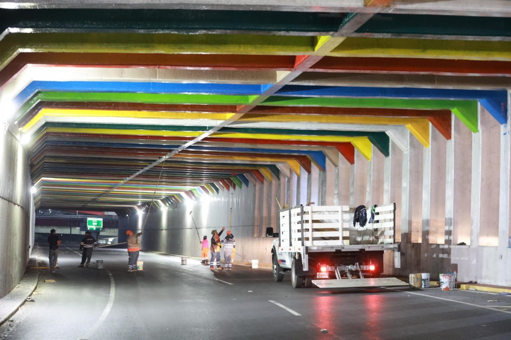 De igual forma se pintaron cordones, banquetas, tubos y vigas en este complejo vial.