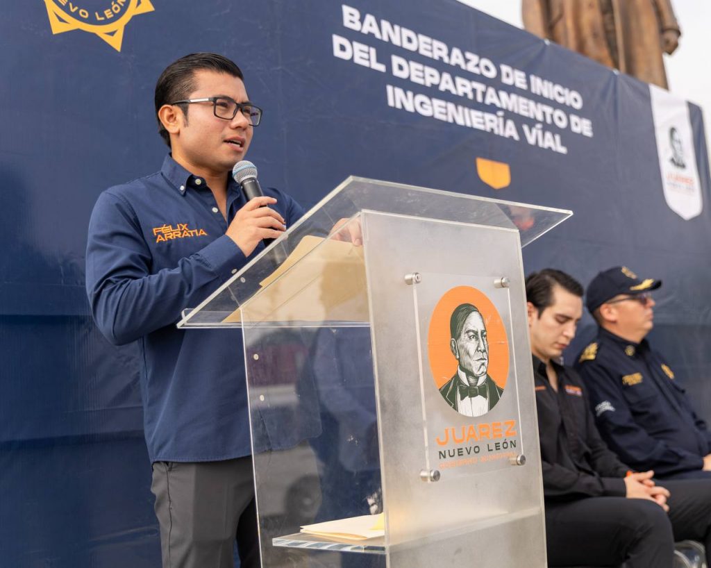 Juárez, Nuevo León, a 16 de julio del 2025.- Continuando con la implementación de medidas estratégicas que pongan a Juárez en orden para la ciudadanía, el Gobierno Municipal de Juárez, a cargo del alcalde Félix Arratia Cruz, dio el banderazo de inicio al Departamento de Ingeniería Vial; área que atenderá el rezago en movilidad e infraestructura urbana que enfrenta el municipio desde hace décadas.