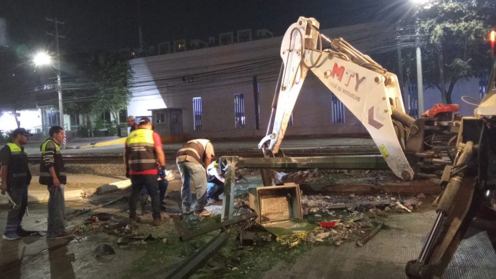 Tras el accidente entre el tren y un camión de pasajeros foráneo, el Gobierno de Monterrey se abocó a las labores de limpieza de la vialidad afectada a la altura de la colonia Santa María, en los límites con el municipio de San Pedro.