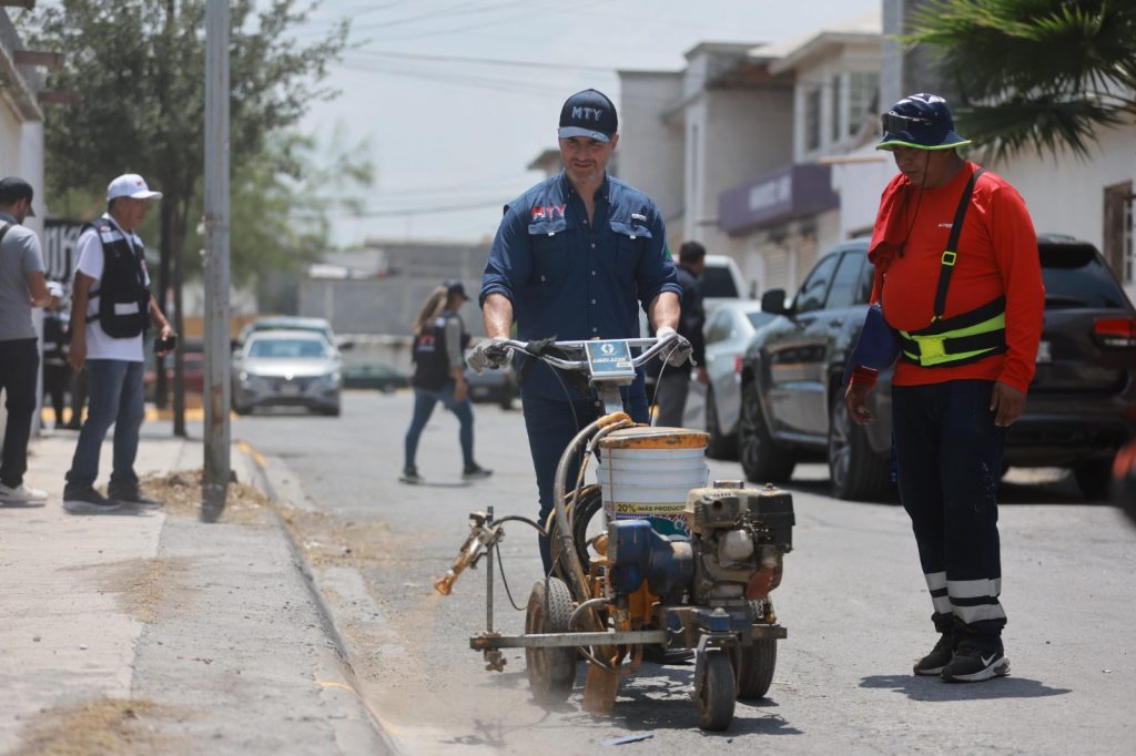 El alcalde Adrián de la Garza Santos supervisó los trabajos, entre los que se incluyeron descacharrización, limpieza general, deshierbe, pintura de bordos y ochavos, poda de árboles, bacheo, retiro de cableado en desuso, reparación de luminarias y fumigación, entre otros.