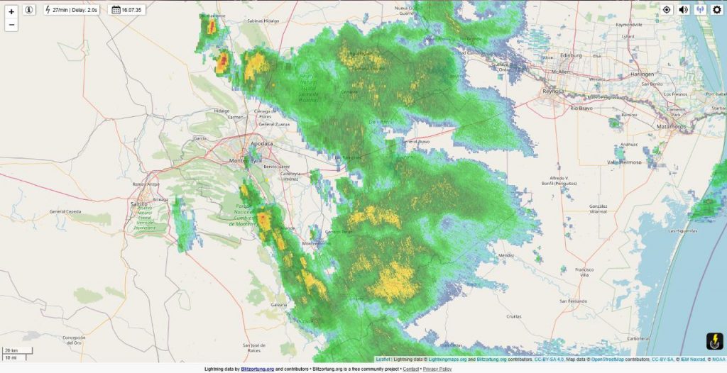 Monterrey, N.L. – Protección Civil de Nuevo León reportó este domingo 29 de junio de 2025 un panorama meteorológico con temperaturas de 29°C, cielo parcialmente nublado y vientos de 16 km/h, acompañados de rachas de entre 40 y 60 km/h. Los radares meteorológicos indican precipitaciones en las regiones citrícola, oriente, sur, norte y parte del área metropolitana de Monterrey, con presencia de actividad eléctrica.