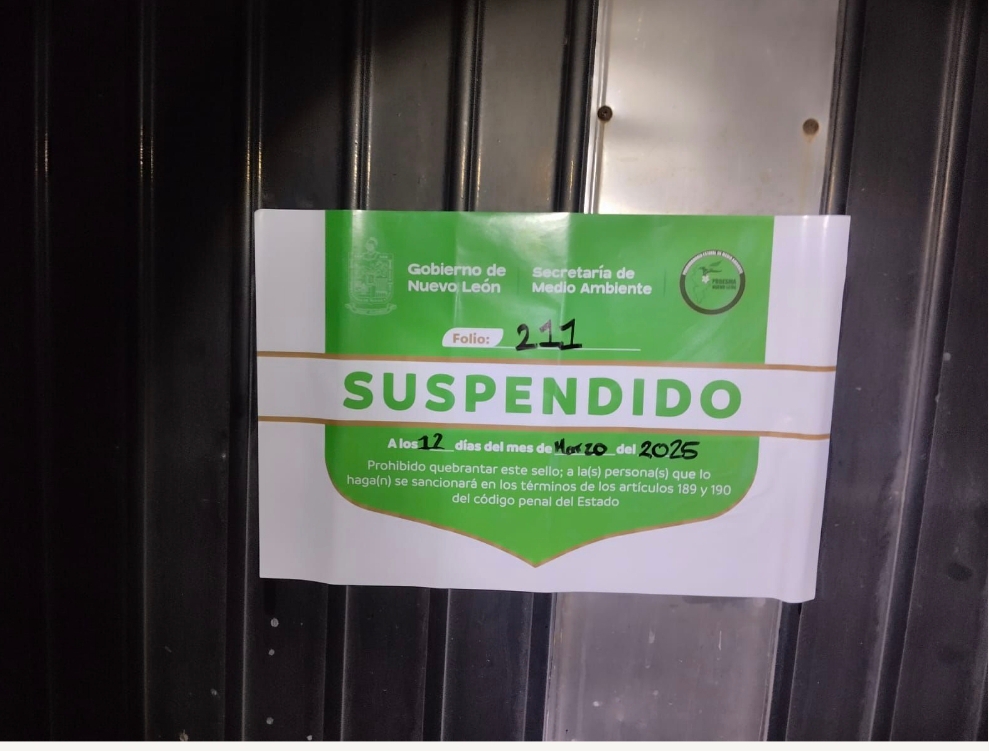 También se suspendió de manera total de una obra en construcción a cargo de Casas Javer, S.A. de C.V., ubicada en Santa Catarina; en virtud de las emisiones generadas durante su desarrollo y por no cumplir con las disposiciones de la legislación ambiental.