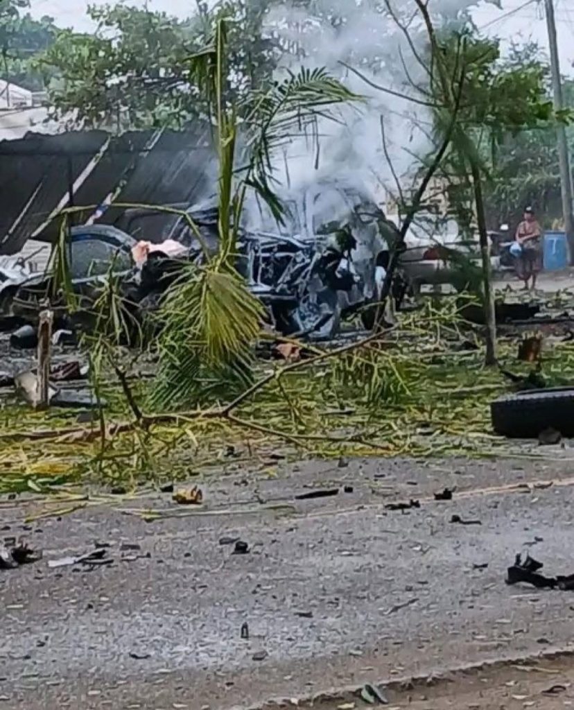vehículo cargado con explosivos frente a la comandancia de la Policía Comunitaria y la presidencia municipal de Coahuayana, Michoacán.