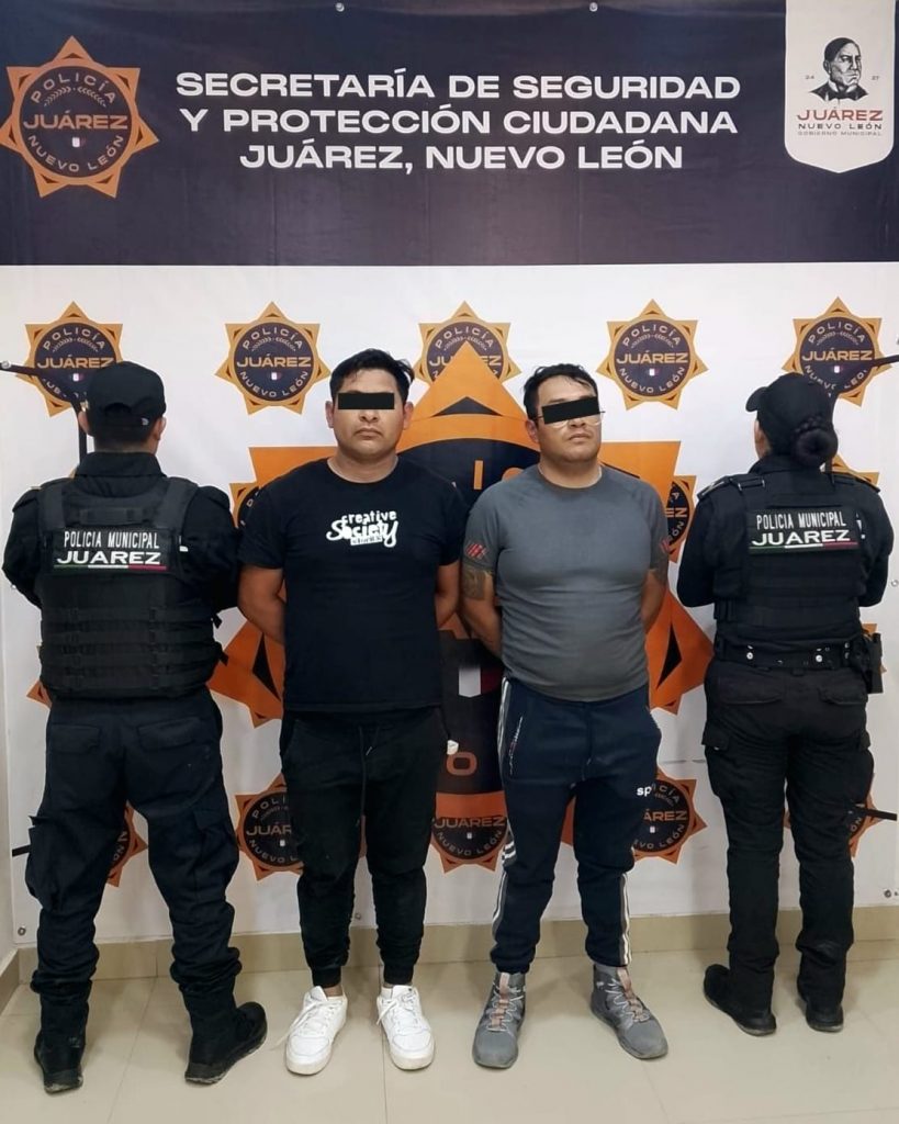 JUÁREZ, N.L.– Gracias al monitoreo permanente de las cámaras del C4, elementos de la Secretaría de Seguridad y Protección Ciudadana de Juárez realizaron la detención de dos hombres en posesión de un vehículo con reporte de robo vigente, durante una intervención registrada en la colonia Los Ebanitos, como parte del Operativo Calles en Orden.