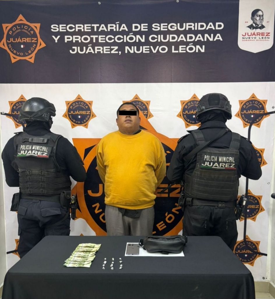 JUÁREZ, N.L.– Como resultado de las labores del Operativo Calles en Orden, un hombre fue detenido por elementos de la Secretaría de Seguridad y Protección Ciudadana de Juárez por delitos contra la salud, durante recorridos de prevención y vigilancia en la colonia Centro.