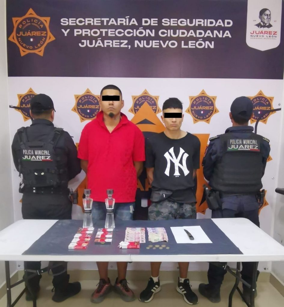 JUÁREZ, N.L.- Como resultado de las labores del Operativo Calles en Orden, dos personas fueron detenidas por elementos de la Secretaría de Seguridad y Protección Ciudadana por su participación en un robo con violencia cometido en una tienda de conveniencia ubicada en la colonia Lomas de Córdoba.