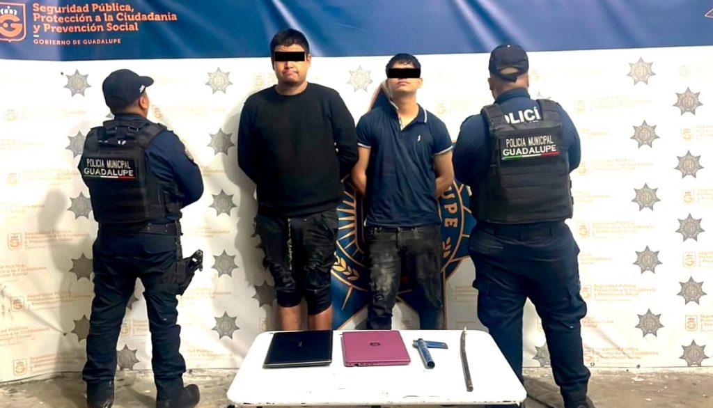 Policías de Guadalupe capturaron en flagrancia a dos presuntos ladrones, a quienes sorprendieron dentro de un negocio de un lote de autos.
