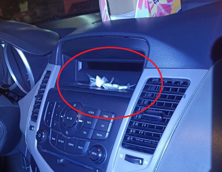Los oficiales les marcan el alto, pero al descender, la conductora y el copiloto comienzan a insultarlos, por lo que proceden a realizarles una revisión, encontrándoles en su poder, así como en el coche, 12 envoltorios con una sustancia sólida similar a la droga tipo cristal y 44 dólares.