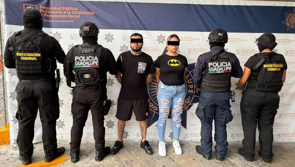 Policías de Guadalupe capturaron- en un operativo- a una pareja de presuntos integrantes de un grupo criminal de presencia nacional- uno de ellos que realiza labores de halconeo.