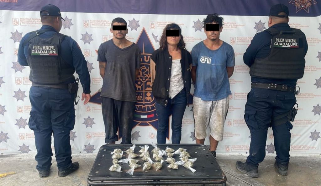 Policías de Guadalupe detuvieron a dos hombres y una mujer que presuntamente se dedican al narcomenudeo.