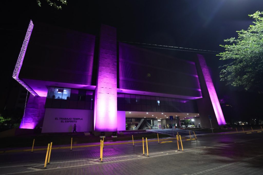 El Gobierno de Monterrey iluminó de color morado el palacio municipal como un gesto de apoyo este dos de junio a la jornada mundial para concientizar sobre los desórdenes alimentarios.