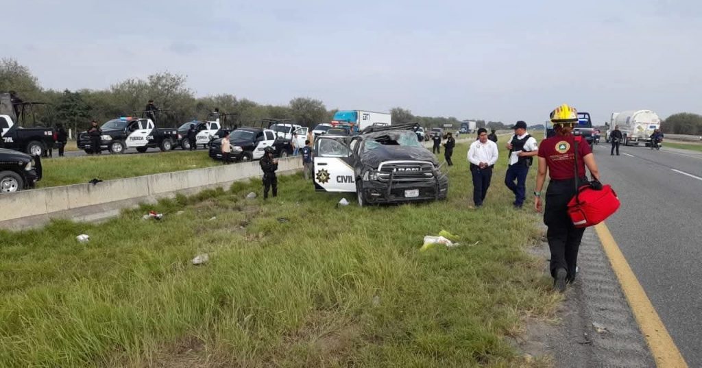 Patrulla de Fuerza Civil volcó y 6 elementos salieron volando por los aires