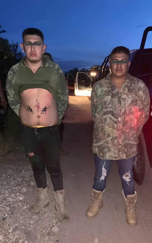 Policías de Cadereyta detuvieron a David “N” de 31 y Gustavo “N” de 21 años, de Toluca, integrantes del CDN, cuando se movían por una brecha rumbo al penal llevaban droga, armas y poncha llantas.