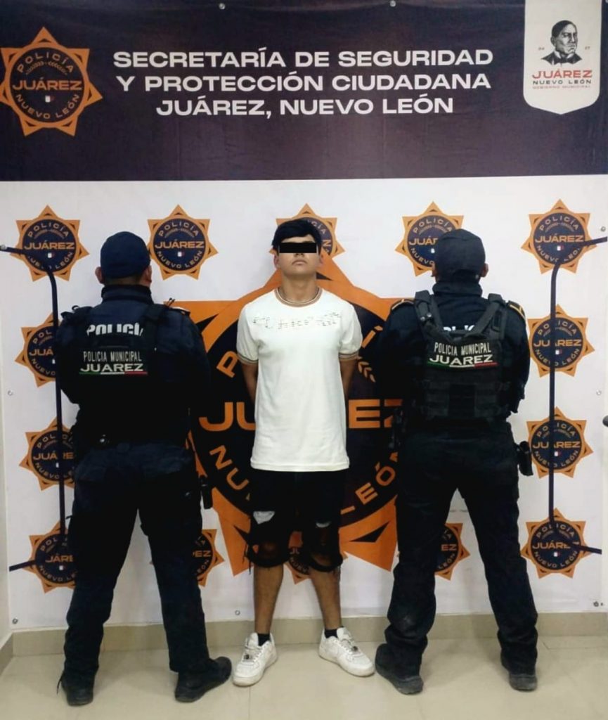JUÁREZ, N.L.– Como resultado de los recorridos de prevención y vigilancia del Operativo Calles en Orden, policías de Juárez detuvieron a un joven en posesión de droga, en la colonia Villas de San Francisco.