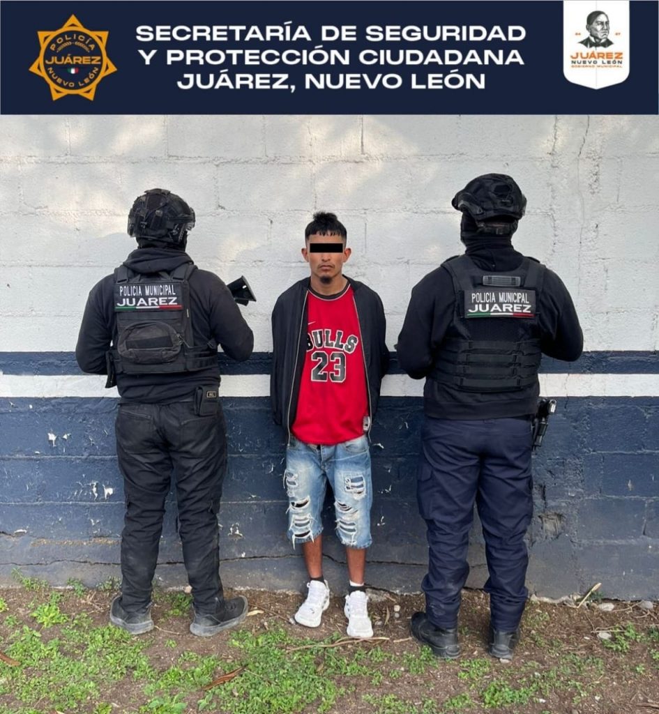 JUÁREZ, N.L.– Como parte de los recorridos de prevención y vigilancia del Operativo Calles en Orden, un joven fue detenido por portación de arma de fuego, durante una intervención registrada sobre la avenida Prolongación Pablo Livas, en la colonia Colinas de la Morena.
