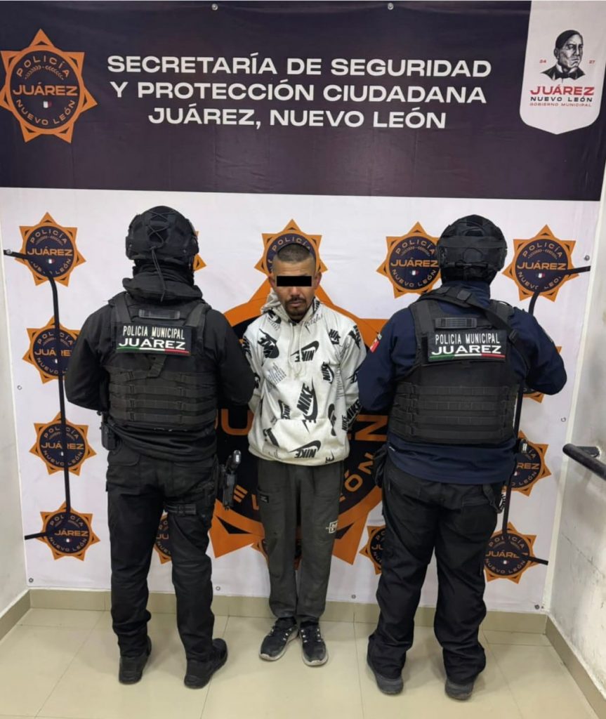 JUÁREZ, N.L.– Como resultado de las acciones permanentes del Operativo Calles en Orden, elementos de la Secretaría de Seguridad y Protección Ciudadana de Juárez realizaron la detención de un hombre por delitos contra la salud, durante una intervención registrada en la colonia Villas de San Juan.