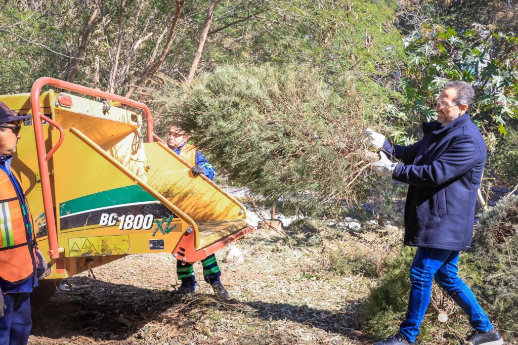 Los pinos serán triturados para producir acolchado natural, una práctica que contribuye a la conservación de áreas verdes y la reducción de contaminantes.