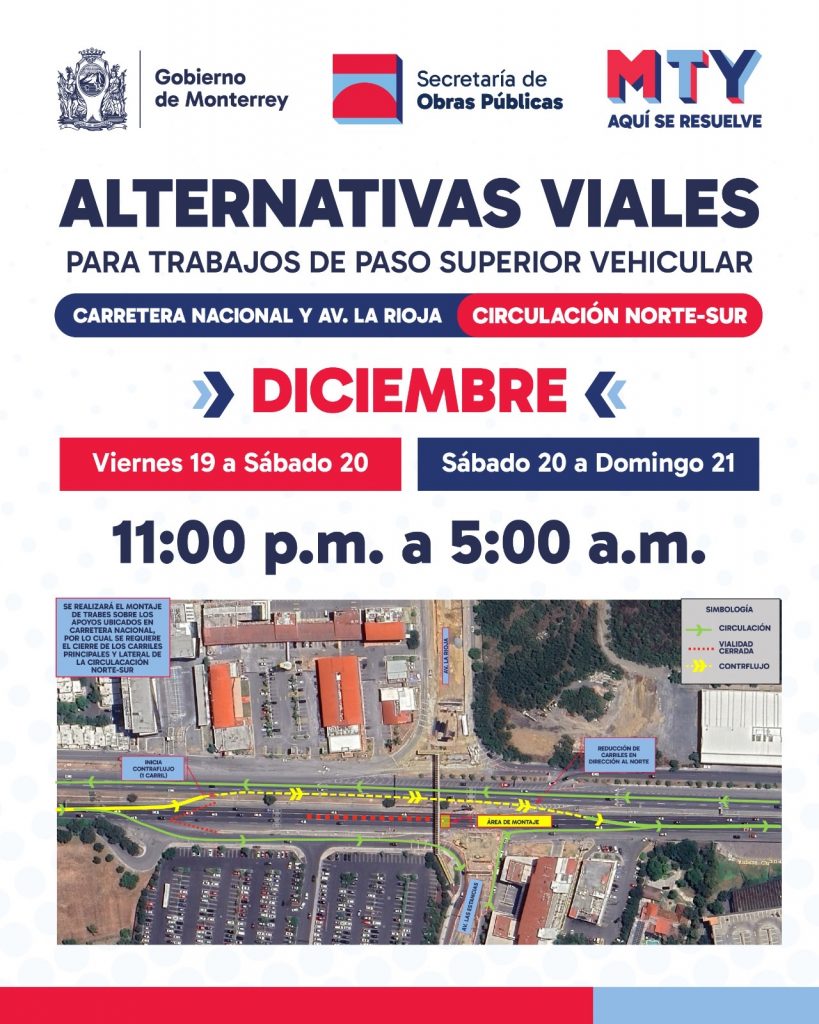Esto significa que desde anoche y hasta el próximo sábado se estará restringiendo el paso vehicular en el sentido de sur a norte, sin embargo, se instaló un contraflujo y señalamientos en las desviaciones para evitar el área de construcción.