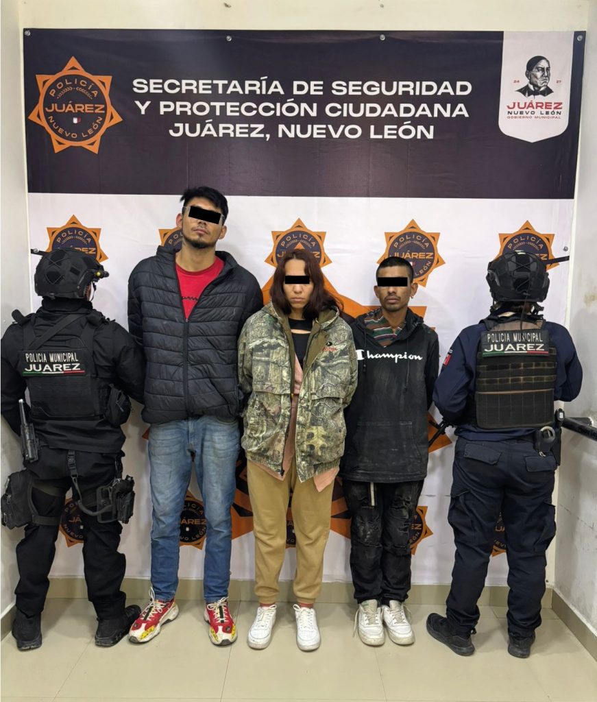 JUÁREZ, N.L.– Durante recorridos de prevención y vigilancia del Operativo Calles en Orden, elementos de la Secretaría de Seguridad y Protección Ciudadana de Juárez detuvieron a tres personas en posesión de droga, en la colonia Los Encinos, tras la atención a un reporte ciudadano.