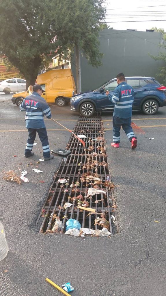 Un total de 1,541 parrillas pluviales se intervinieron en el primer turno de este miércoles en distintos puntos de Monterrey para hacerlas permeables mediante el retiro de basura.