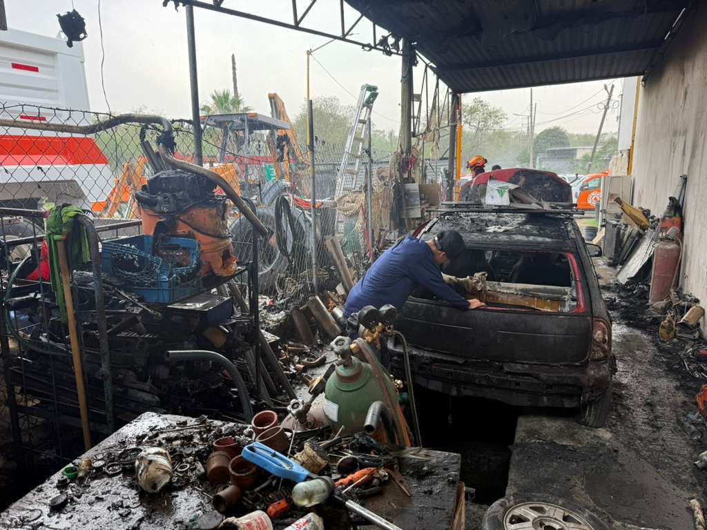 Las chispas generadas cayeron en el área de combustible del automóvil, provocando el fuego.El incendio consumió diversas herramientas del taller y provocó daños en el techo de lámina debido a la alta temperatura.