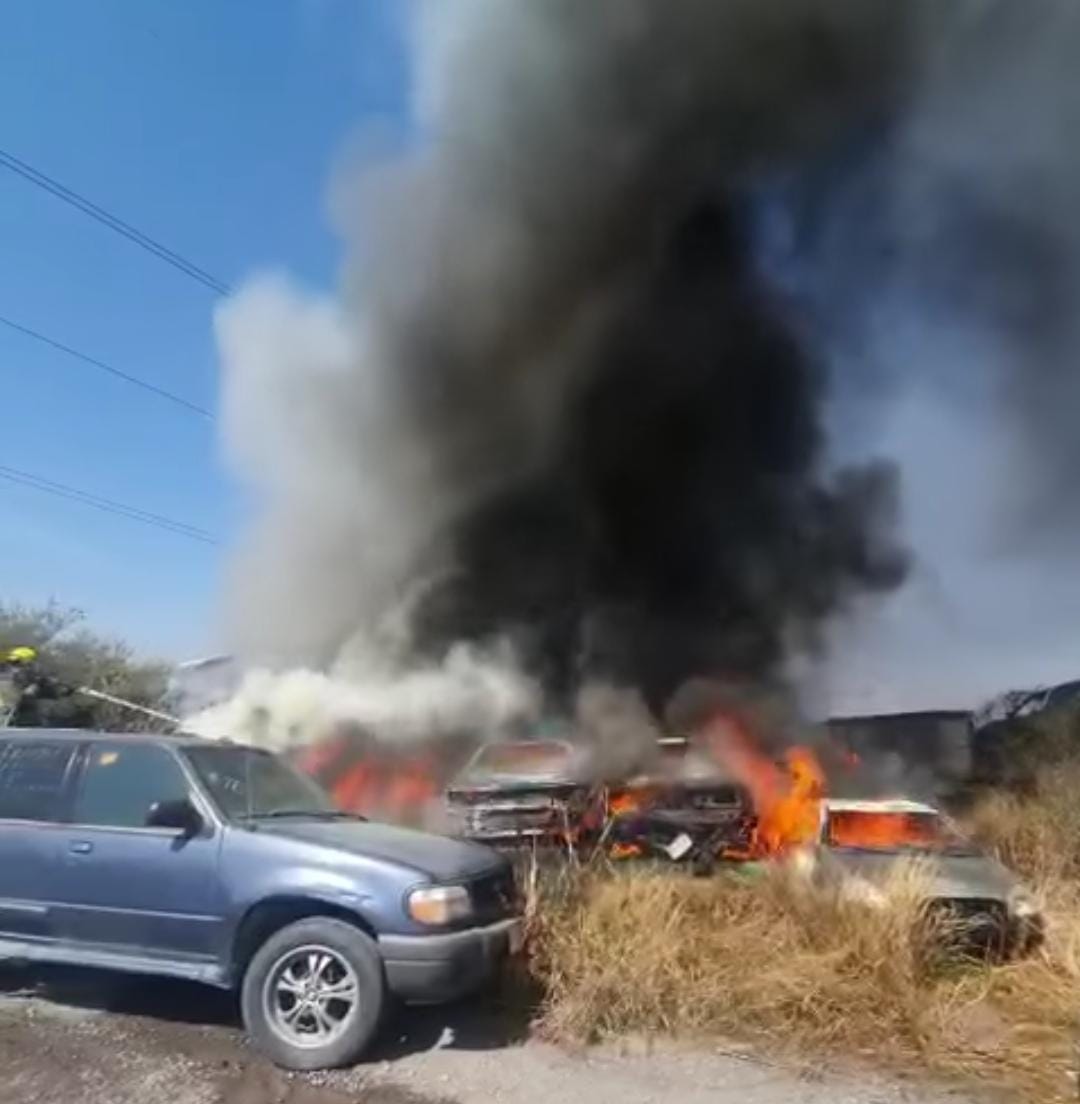 El incendio del resguardo de autos situado en la colonia El Jaral, movilizó a bomberos y páramédicos, estos últimos acudieron como personal de apoyo, junto con Protección Civil del lugar.