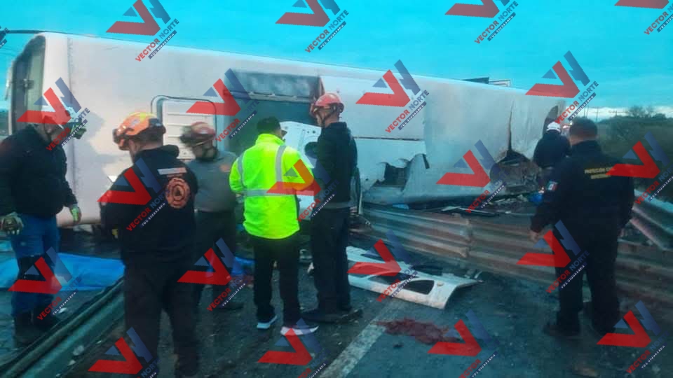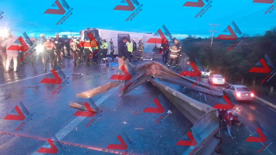Volcadura de camión de pasajeros de la Ruta 611 Pesquería deja a siete personas muertas y más de 15 lesionadas.