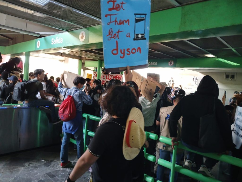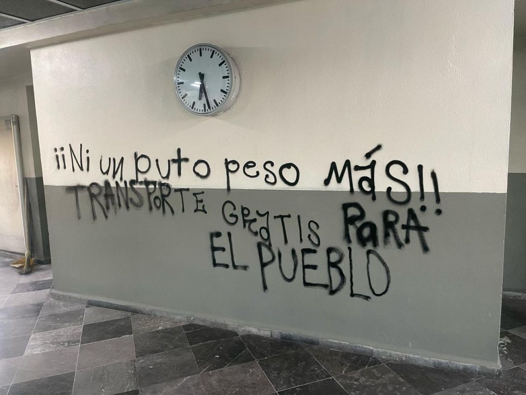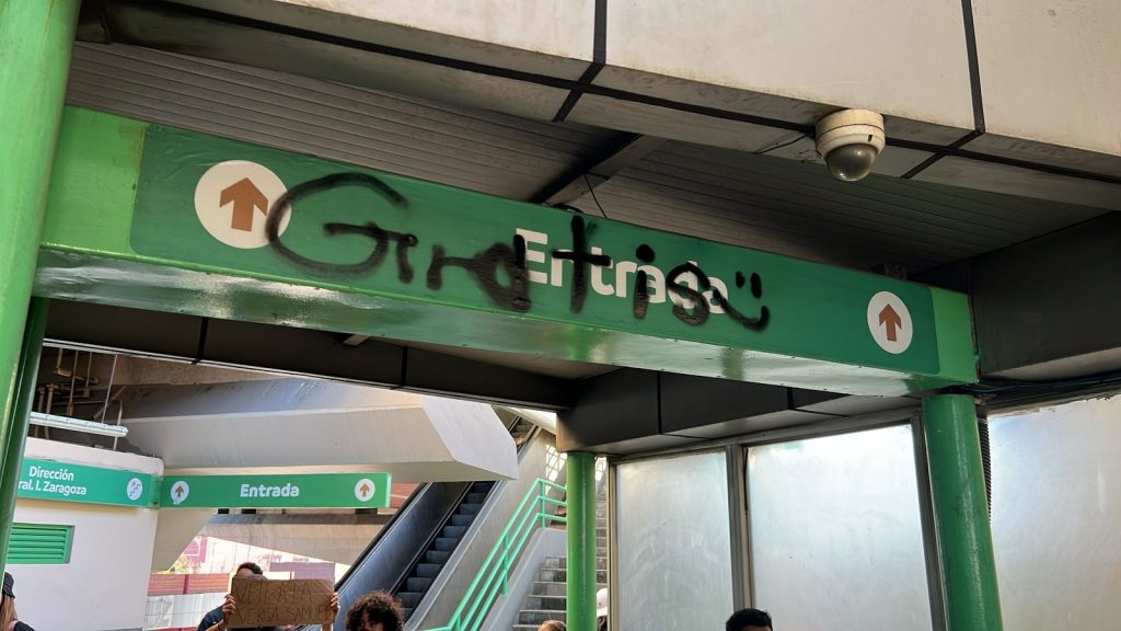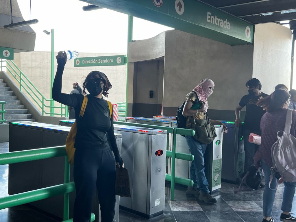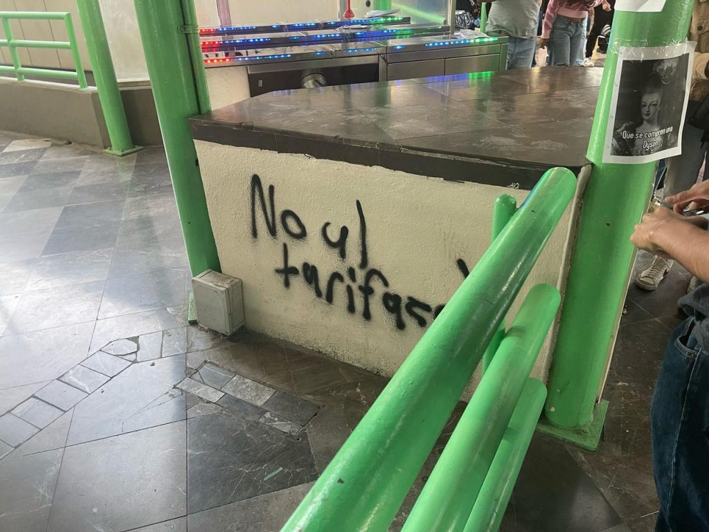 En la estación Universidad del metro los estudiantes realizaron algunas pintas y dejaron pasar a numerosos usuarios gratis.