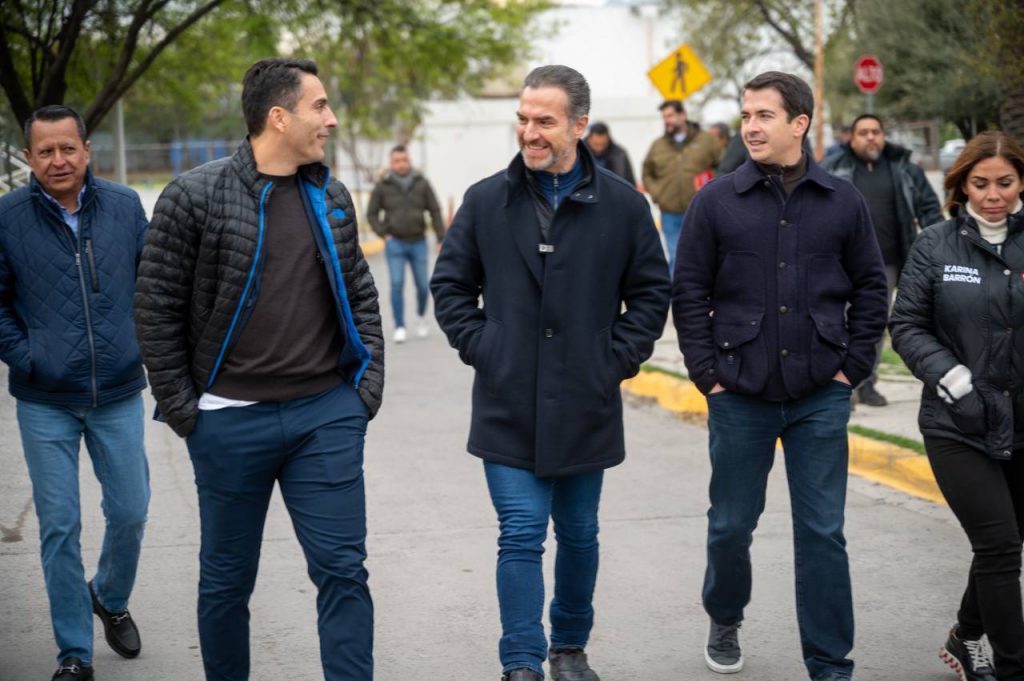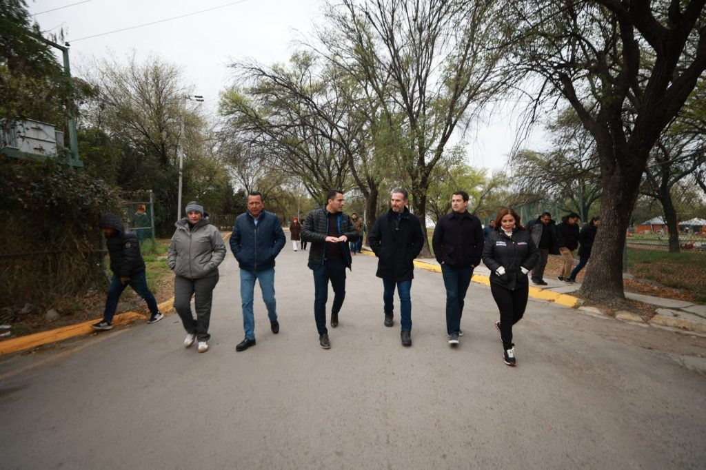 En la supervisión acompañaron al alcalde: Karina Barrón Perales, secretaria de Desarrollo Humano e Igualdad Sustantiva; Nazario Pineda Osorio, secretario de Infraestructura Sostenible; Mayela Quiroga Tamez, secretaria de Servicios Públicos; Marcelo Segovia Páez, director General de Administración; y Aldo de Nigris Guajardo, director de Cultura Física y Deporte.