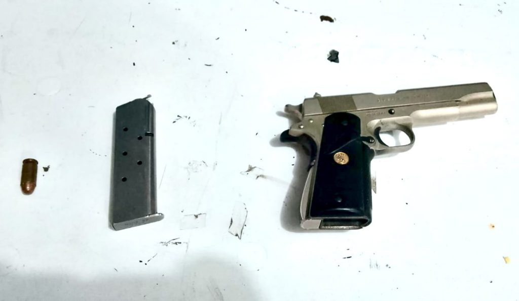 Tras el reporte de disparos de arma de fuego en calles de la Colonia 21 de Enero, policías de Guadalupe detuvieron a un hombre con la posesión de una pistola calibre .45 mm.