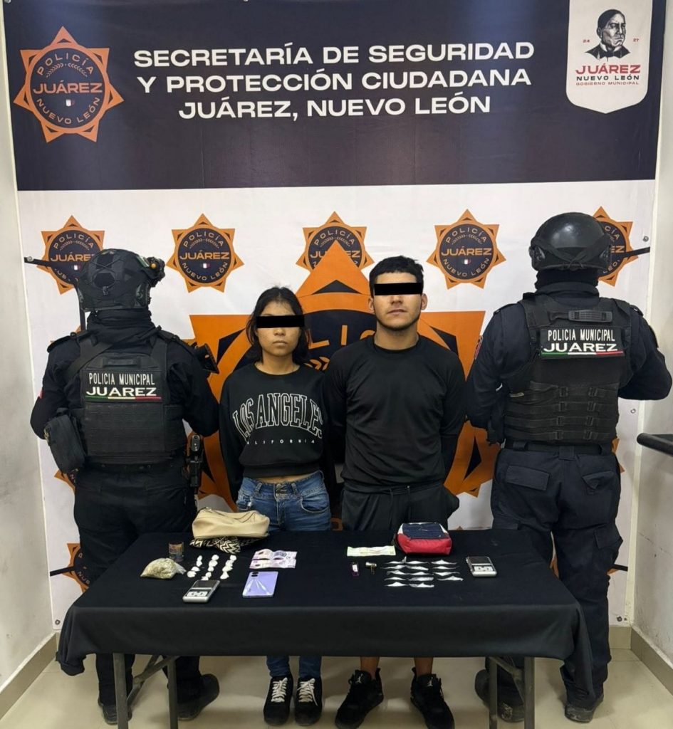 Las personas fueron identificadas como Ángel Enrique “N”, de 24 años, y Lorena “N”, de 18 años. Durante una inspección preventiva se localizaron en las mariconeras que portaban bolsitas con una sustancia sólida y cristalina con características del cristal, hierba verde y seca con características de la marihuana, una pipa metálica, un grinder, dinero en efectivo y un teléfono celular.